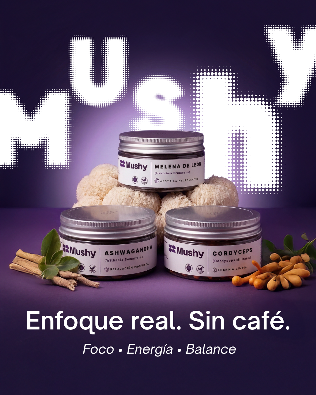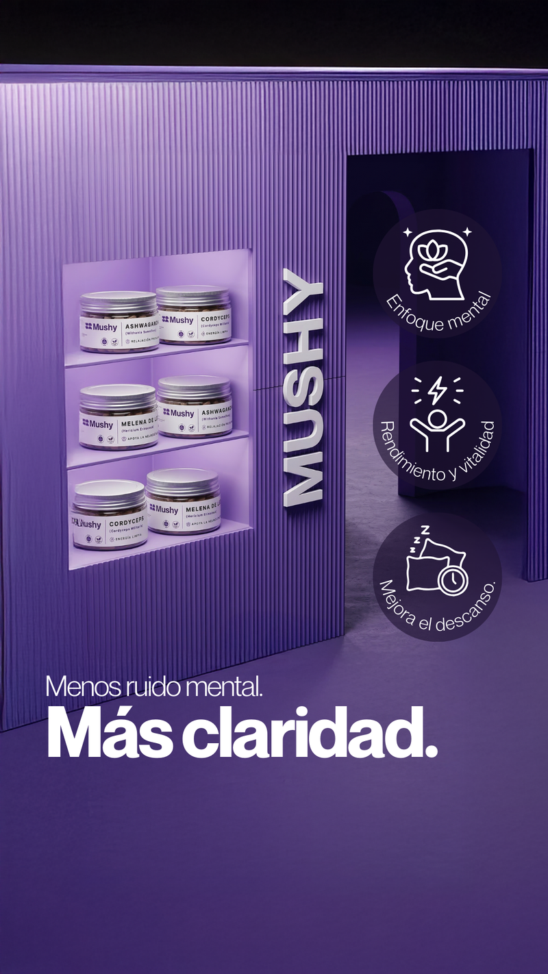 Mushy redefine el bienestar mental. Combinamos extractos de alta biodisponibilidad.